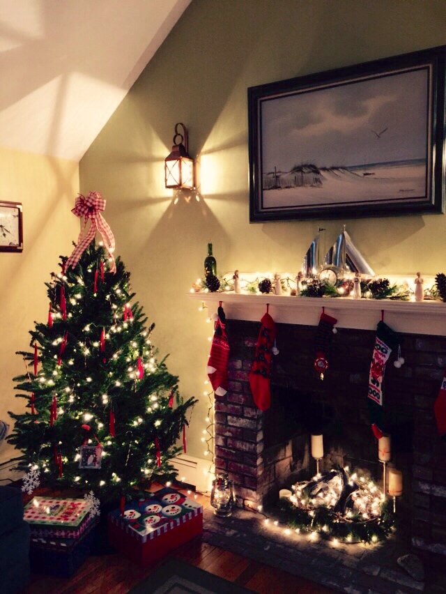 Oh, I really didn't like it. It was too tall, too wide and too green, but I had to find a way to make this work. The first thing I did was chide myself. Do you remember that Facebook thing you made this morning about your year in review? Do you remember how thankful you felt for your life? Yes. Yes, I did, but my tree is still too big. Then I had an idea. I think what was making it too big and appear to takeover the room was it's positioning. I knelt down, pushed the stand further into the corner. Slid the couch closer and voila! The big tree suddenly fit. It was still too green and a bit too tall, but it was growing on me.