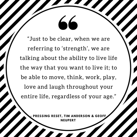 Today I read a quote that made me stop and think about what it really means to be strong. Measuring strength solely by the number of pounds lifted is a very narrow definition of strength. We are so much more than the number of pounds we lift or the number on the scale. We are people – humans – and there is a lot more to us than numbers. I came across this quote from the book Pressing Reset,Original Strength Reloaded:
